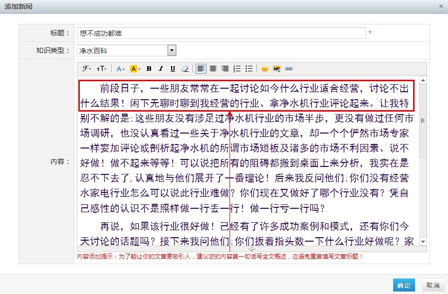 编辑提示:为了能让你的文章更吸引人,建议您的内容第一句话写全文概述,应避免重复填写文章标题!