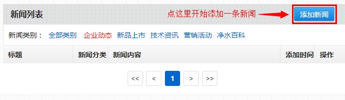 第一步:在新闻管理页面,点击“添加新闻”按钮;