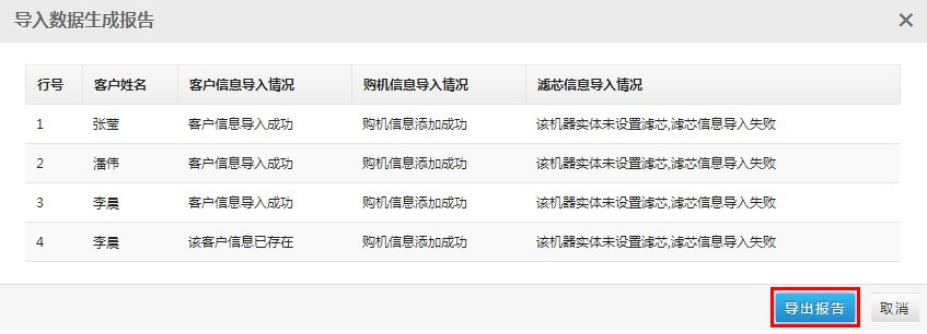 “导入用户”功能是为了方便已有大量客户资料的用户,批量添加到水事易系统而设计,这些信息包括客户的基本信息和购机记录。而“导出用户”则是指将您的水事易系统内客户资料导出生成Excel文件,以备不时之需!