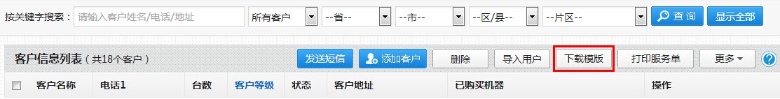 第一步:打开“客户资料”页面,点击如下图“下载模板”按钮,下载并打开编辑模板: