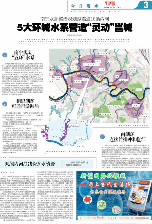 剪报图片:生活报 五大环城水系营造灵动邕城