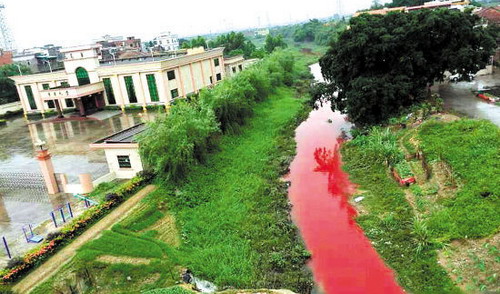 据博罗县有关部门介绍,5月11日,网友爆料园洲镇李屋村北冲口排渠出现红、蓝色水体。县镇有关部门接报后,立即赶赴现场调查。当晚即采取措施,对两家涉嫌直排污水的印花厂作出停产、停排污水决定,并立案调查,坚决依法从快从严从重处理。同时,对北冲口排渠沿岸涉及排污的17家污染工业企业全面进行停产整顿。