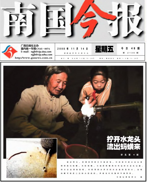 剪报:南国今报 拧开水龙头 流出蚂蝗来